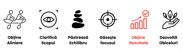 Îți definești în mod strategic o serie de rezultate în cascadă astfel încât să ai vizibilitate, claritate și focus asupra felului în care vei face schimbări în aria pe care ai decis să o crești.
